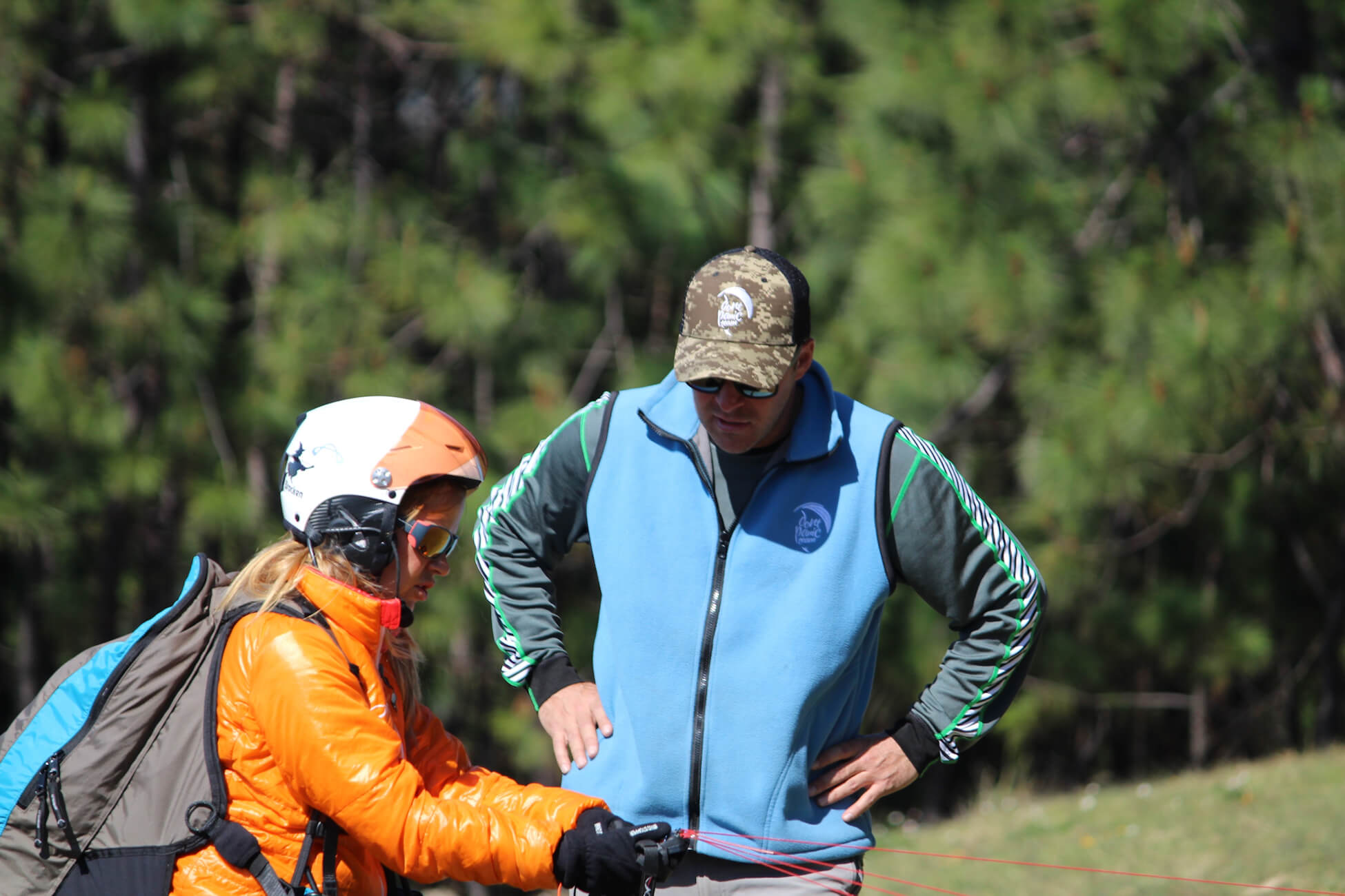 Equipo completo: parapente, arnés, casco, radio y chaleco salvavidas.